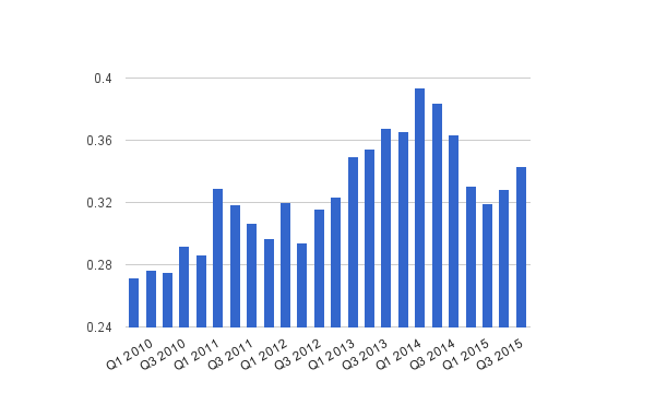I will probably do a more in depth analysis at a later point, perhaps after the 2015 annual report is out. I currently own 15 shares of Unilever (NYSE:UL). But I want to see a lower price before increasing my amount of shares.